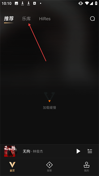 1、进入音乐首页,点击顶部【乐库】标签,进入音乐分类页面。