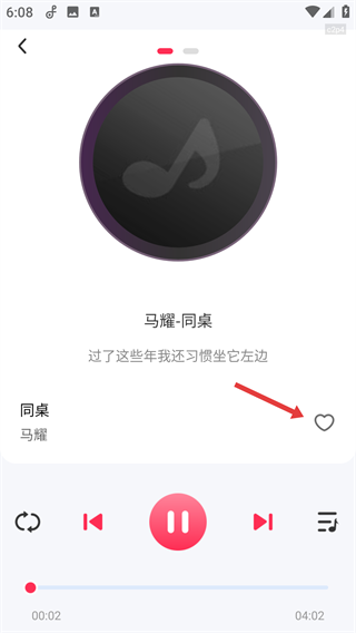 4、进入播放界面后,可点击右侧的【心形】按钮将歌曲加入喜欢列表呢。
