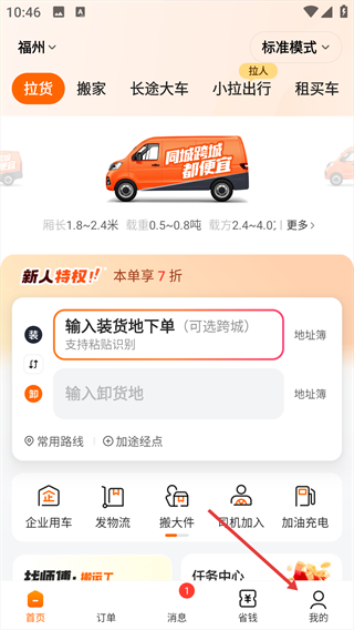 5、拉货、搬家、速运需求全满足,无需繁琐操作,在平台内即可一键搞定所有货运事宜。