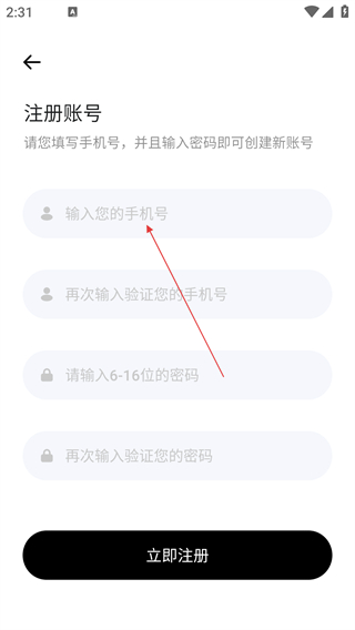 4、在注册账号界面,填写手机号、验证手机号、设置密码后,点击【立即注册】按钮,完成账号注册。