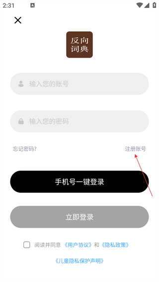 3、在登录注册页面,点击【注册账号】选项,进入注册账号界面。