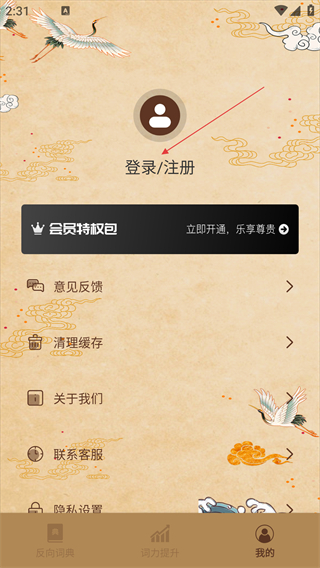 2、在个人中心页面,点击【登录/注册】选项,进入登录注册页面。