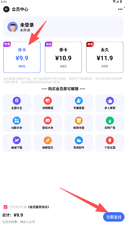 3、前往会员中心选择套餐完成支付,即可解锁主题资源。