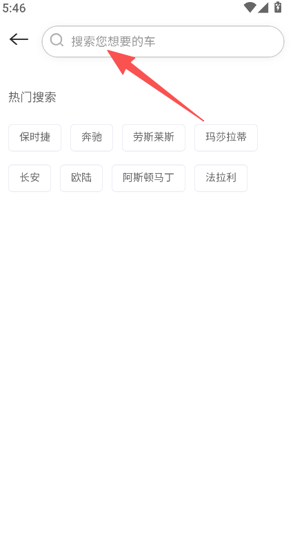 1、进入搜索页面,搜索想要的汽车品牌或车型。