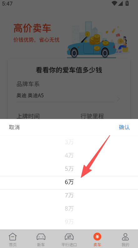 2、支持卖车估值服务,需填写品牌车系、上牌时间、行驶里程等信息,为用户卖车提供价值参考依据。