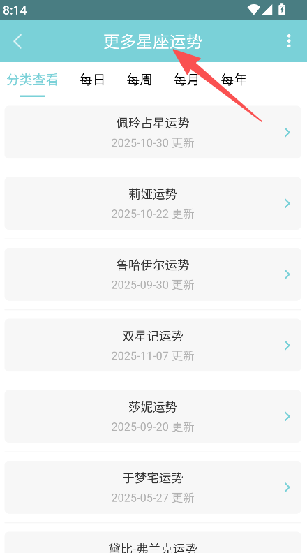 1、进入更多星座运势板块,选择分类查看每日、每周等运势。