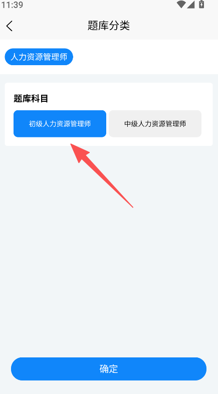 1、进入题库分类,选择初级或中级人力资源管理师科目。