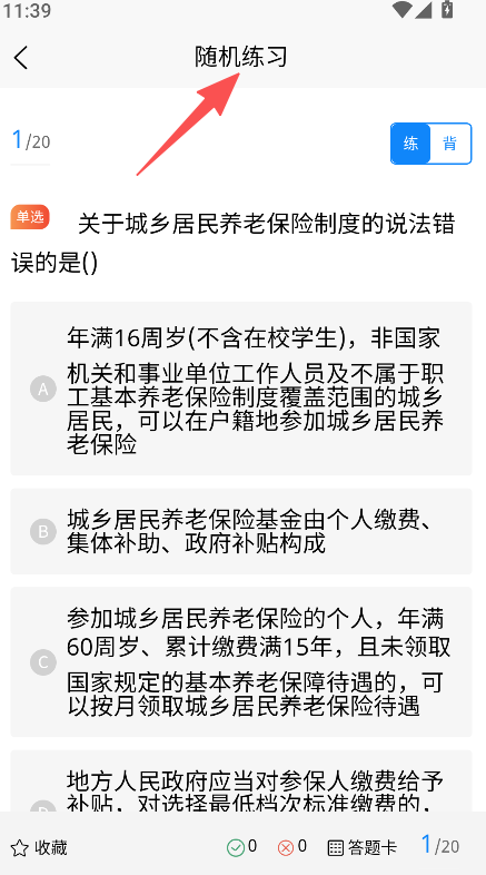 2、进入随机练习,开始答题练习。