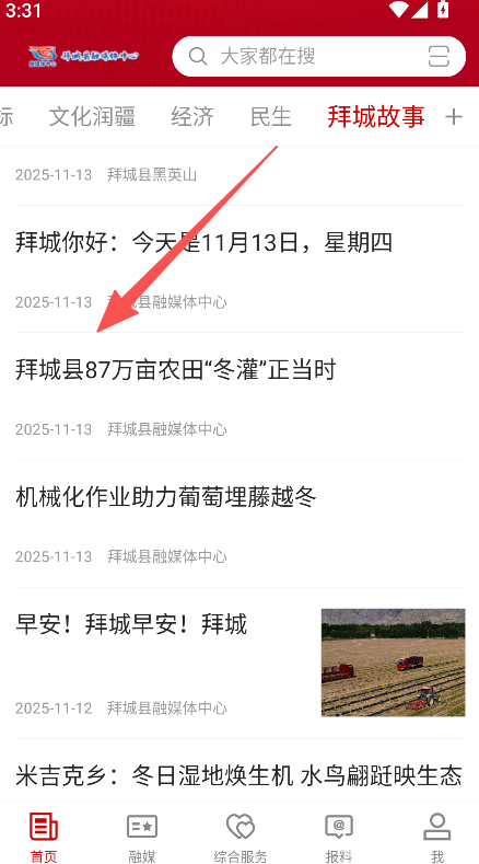 1、板块分类清晰,拜城故事板块内资讯分类明确,用户可快速定位感兴趣的本地内容,提升获取效率。