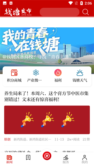 1、依托钱塘新区融媒体中心资源,提供及时准确的时政报道、民生速递与区域动态,全面展现钱塘发展风貌与城市脉动。