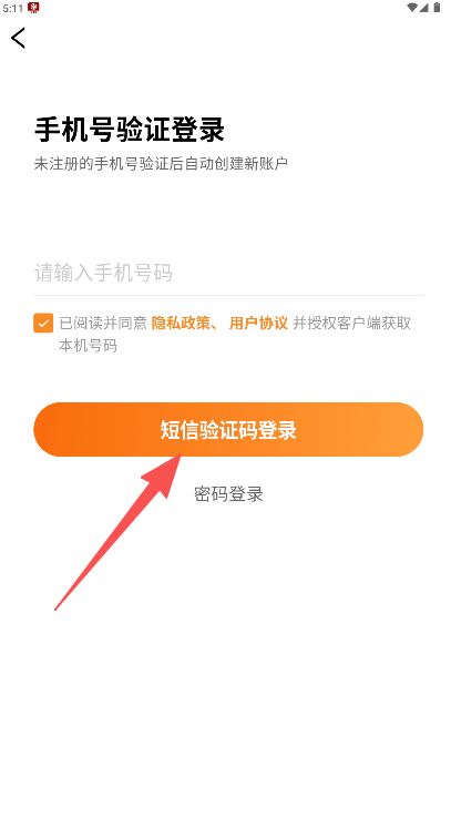1、输入手机号并勾选协议后点击短信验证码登录按钮。