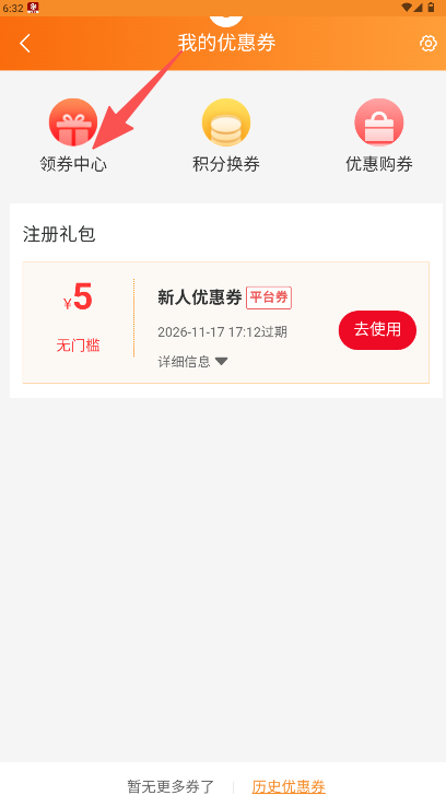 3、新注册即可获得优惠礼包,平台设有专门的领券中心提供多种优惠活动促进消费。
