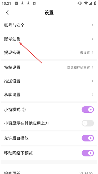 3、在设置界面,点击“账号注销”选项,进行注销账号流程。