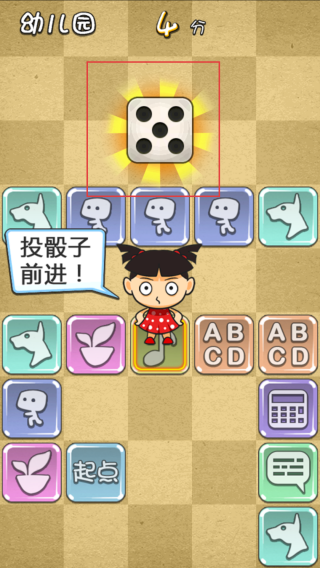3、在幼儿园界面点击骰子,投骰子前进,推进游戏环节。