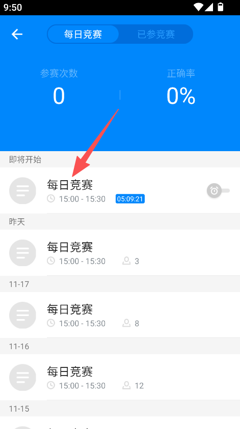 1、打开软件,参与每日竞赛,了解竞赛安排。