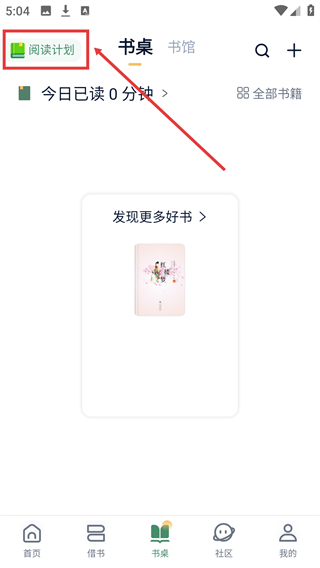2、进入【书桌】页面,能看到左上角的【阅读计划】入口。