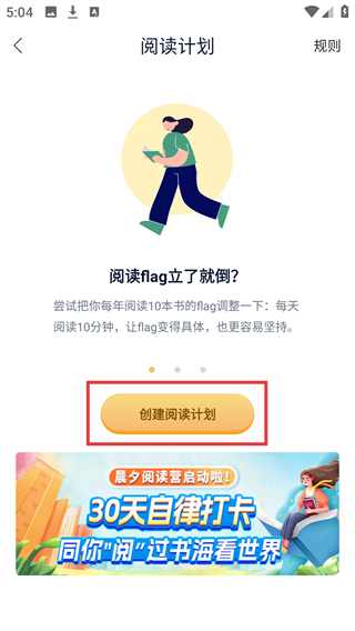 3、进入【阅读计划】页面,会看到阅读flag相关提示,点击【创建阅读计划】按钮即可进入计划创建界面。
