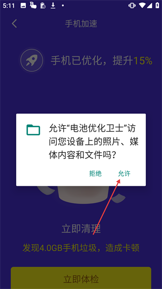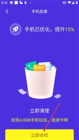 3、在手机加速界面点击【立即体检】,触发权限请求。