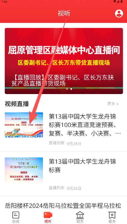 2、具备视频直播点播服务,可以观看赛事直播、区长带货等实时或回放视频内容。