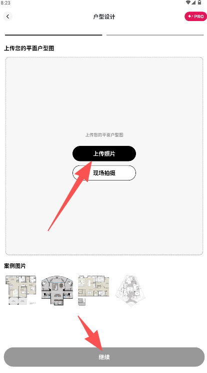 2、点击“上传照片”或“现场拍摄”按钮上传平面户型图。