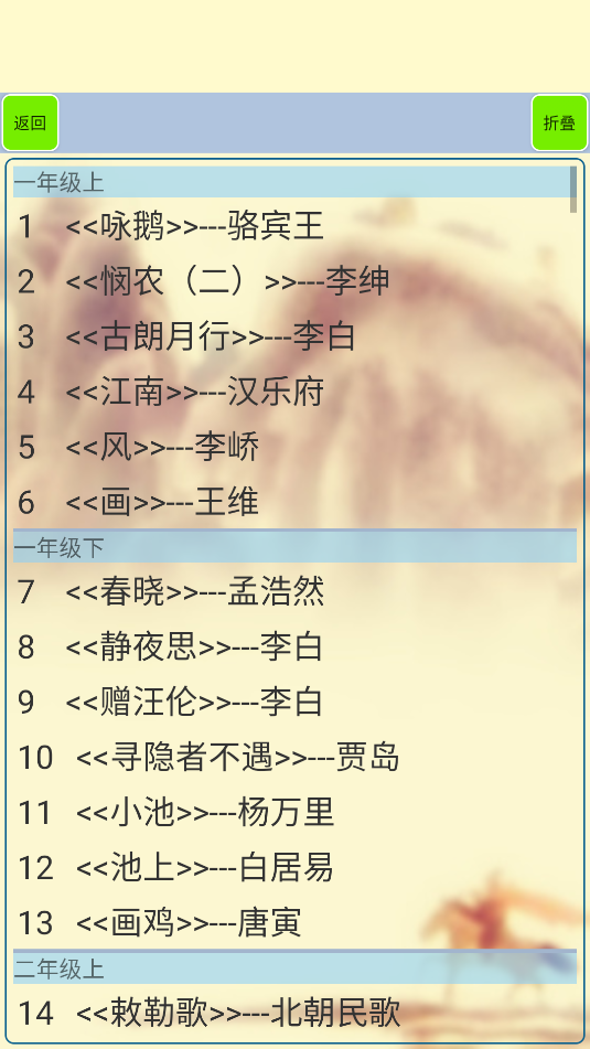 2、进入中小学诗词,可根据年级选择想要的诗词学习。