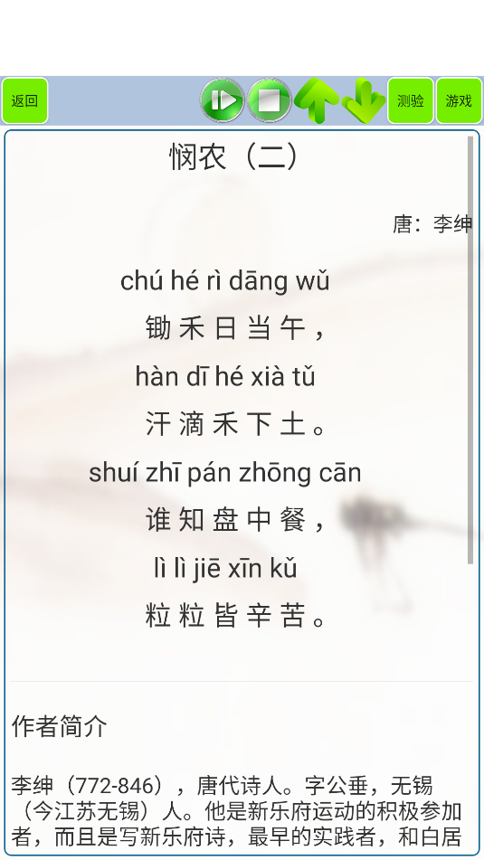 3、诗词中,点击上方的播放按钮可对诗词进行朗读。