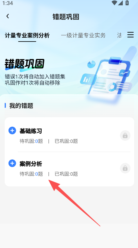 1、打开软件,点击错题巩固,查看错题分类,巩固薄弱知识点。