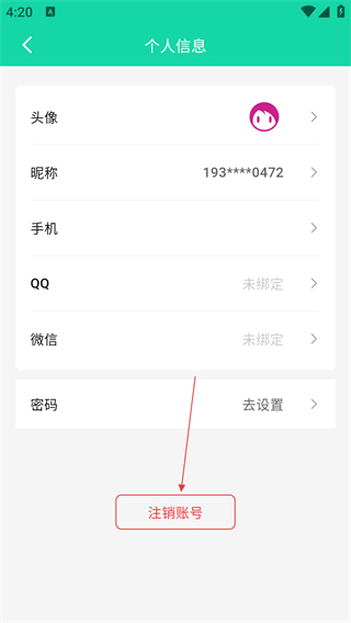 3、在个人信息页面,找到并点击【注销账号】选项,触发注销确认的提示弹窗。