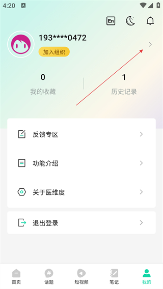 2、在个人中心页面,点击账号区域的箭头,进入个人信息管理界面。