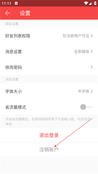 3、在设置页面,点击【注销账户】选项,触发注销账号的确认弹窗。