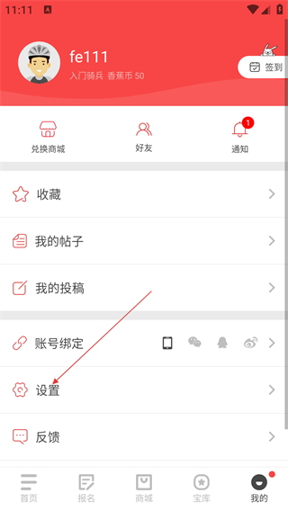 2、在个人中心页面,选择【设置】选项,进入应用的设置功能界面。