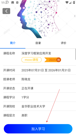 4、在课程详情页,点击【加入学习】,即可开始该课程的学习流程。