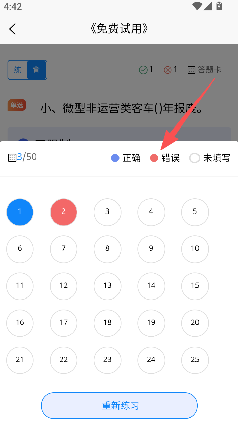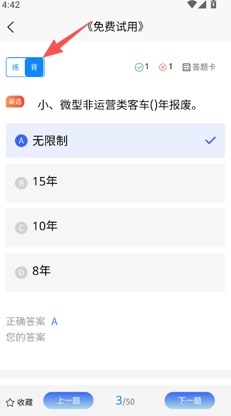 2、切换练或背模式,进行题目作答,巩固考点知识。