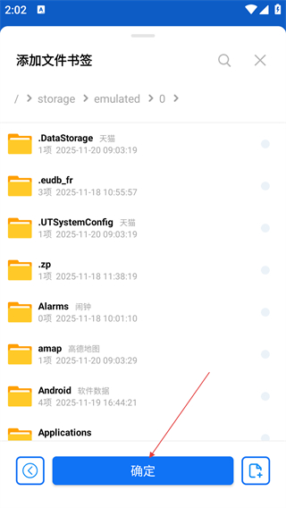 4、在文件路径界面中,选择目标文件所在的目录后,点击【确定】完成文件书签的添加。