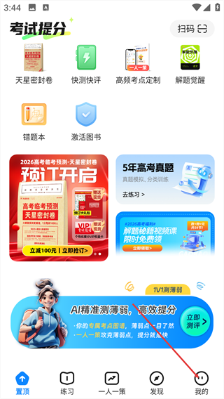 考试在线是依托天星品牌图书精心打造的全学段在线学习教育平台,聚焦小初高学生高效备考、教师便捷教学及在职人群学习提升的核心需求,构建起资源优质全面、功能智能实用、服务精准贴心、体系科学完善、体验流畅便捷的综合性学习生态。它深度整合多学科核心知识点、名师在线精品教学课程、海量优质题库资源,全面涵盖在线考试、智能刷题、专项练习、在线阅读等核心功能。