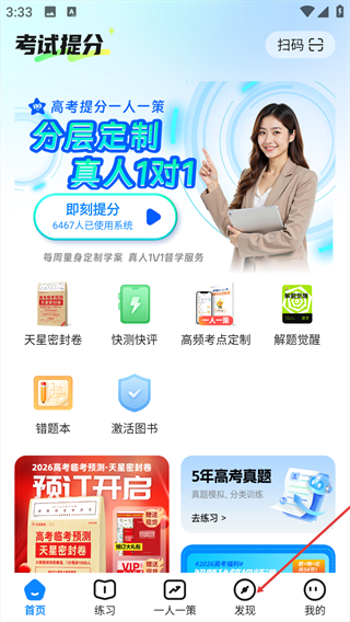 1、在考试提分首页,点击底部【我的】,进入个人中心的功能界面。
