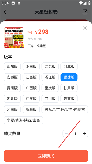 4、选择对应省份的版本,确认购买数量后点击【立即购买】按钮,完成购买操作。