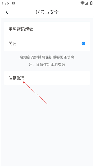 3、在账号与安全页面,点击【注销账号】选项,进入账号注销的身份验证页面。