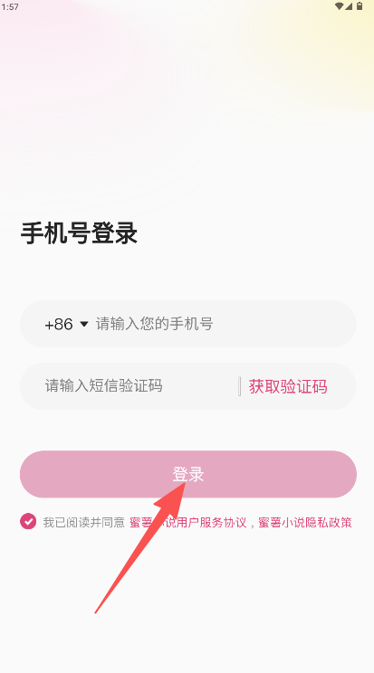 1、在登录页输入手机号与验证码并勾选协议后点击登录。