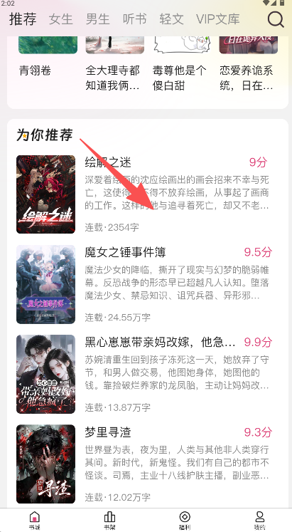 1、推荐机制注重个性化,首页设有为你推荐专区根据读者喜好智能推送感兴趣作品。