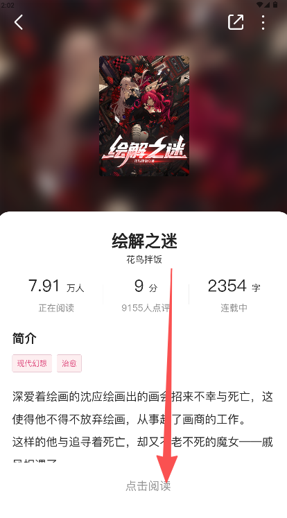 3、进入书籍详情页查看简介与人气数据后点击“点击阅读”开始阅读。