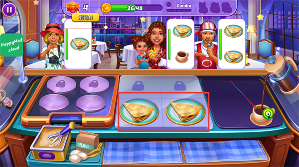 4、完成顾客订单后,可获得金币奖励,积累金币用于解锁新的食材。