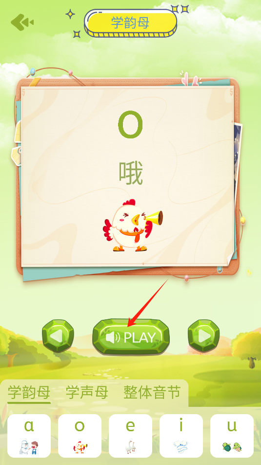 2、页面中,点击PLAY按钮,可以对上方的韵母进行朗读。
