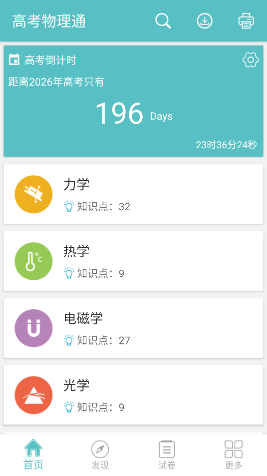 高考物理通是一款高中物理学习辅助工具,贴合高考考纲,覆盖力学、热学、电磁学等全部核心知识点。按教材章节与考点科学编排,分基础梳理、专题突破、冲刺拔高阶段,适配不同复习进度。提供近10年高考真题、省市模拟题及专项练习,每道题目附分步骤解析与易错点标注。自动整理错题集,支持同类题推荐与重复练习,助力查漏补缺。支持知识点缓存离线学习,搭配动画演示与短时微课,化解抽象概念。设置高考倒计时,推送适配学习任务,让碎片时间高效转化为复习成效。