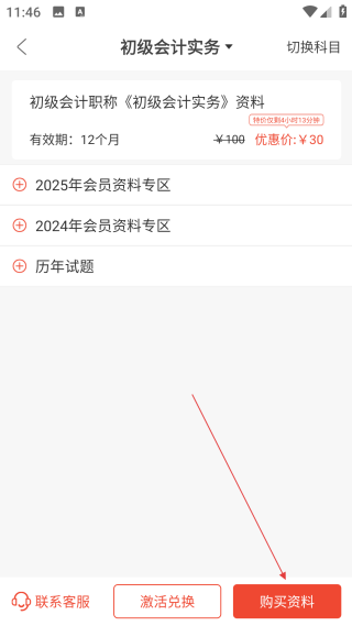 4、在详情页,点击【购买资料】,即可完成购买操作。