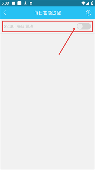 4、进入【每日答题提醒】页面后,找到【22:30-每日震动】对应的开关,点击该开关可控制此提醒功能的启闭状态。