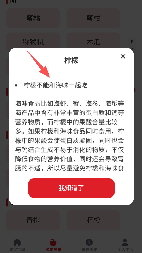 1、禁忌知识实用,聚焦日常水果食用禁忌(如柠檬不能和海味一起吃),解决用户饮食搭配疑惑,保障水果食用的安全性与科学性。