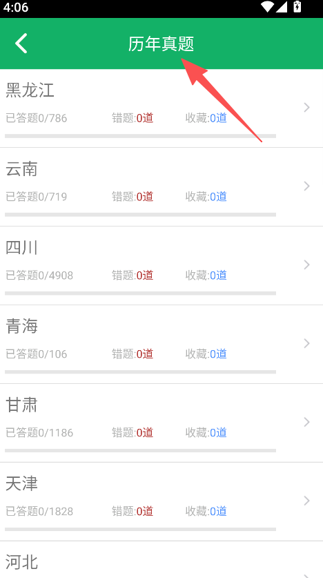 1、打开软件,进入历年真题,选择目标省份(如浙江)。