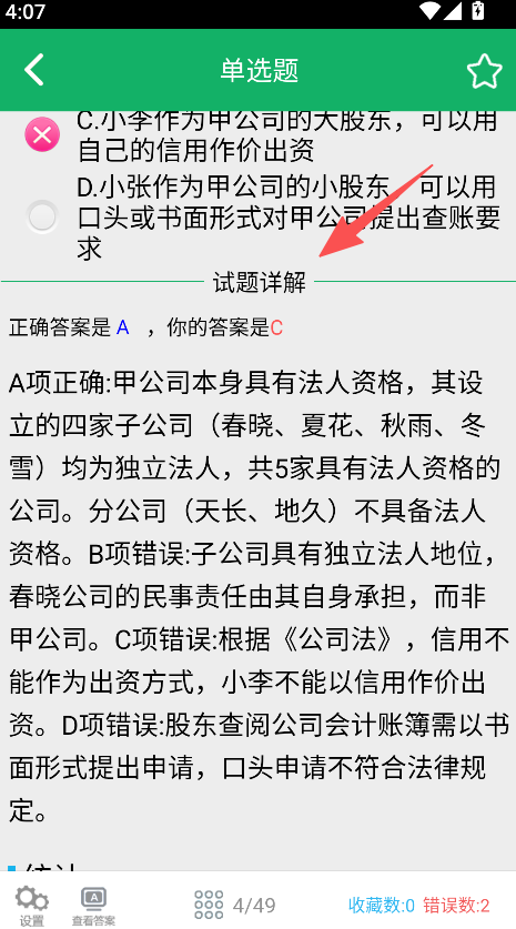 3、完成题目后,查看试题详解,学习知识点与解题思路。