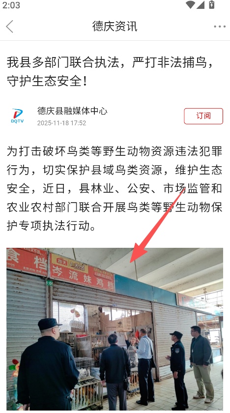 2、选择感兴趣的文章(如多部门联合执法),查看详情,了解本地事件。